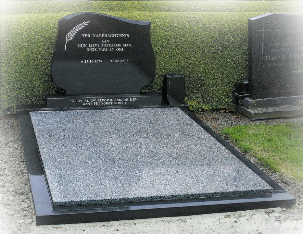 Eenvoudig, ingetogen monument in Busgowetz Graniet. Uitgevoerd met echte Franse Tarn Granieten dekplaat (O.V.) 8 cm € 3.260,- Uitgevoerd met Chinese Tarn Granieten dekplaat (O.V.) 8 cm € 2.890,-