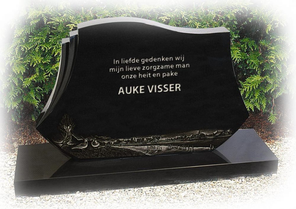 Stijlvol en degelijk monument in Zwart Graniet, als fraai accent zijn er op de linker zijkant een paar siergroeven ingeslepen. (O.V.) 8 cm € 1.790,-(O.V.) 10 cm € 1.997,-