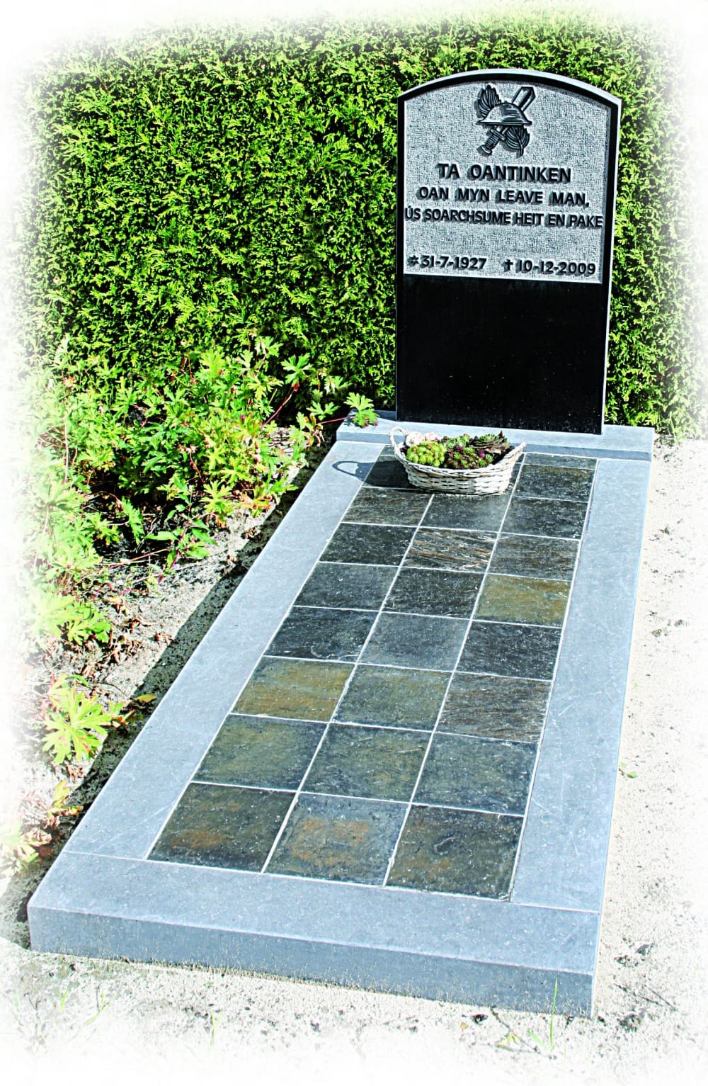 Klassiek monument. Belgisch Hardsteen gecombineerd met Noorse Leisteen tegels. (O.V.) 8 cm.