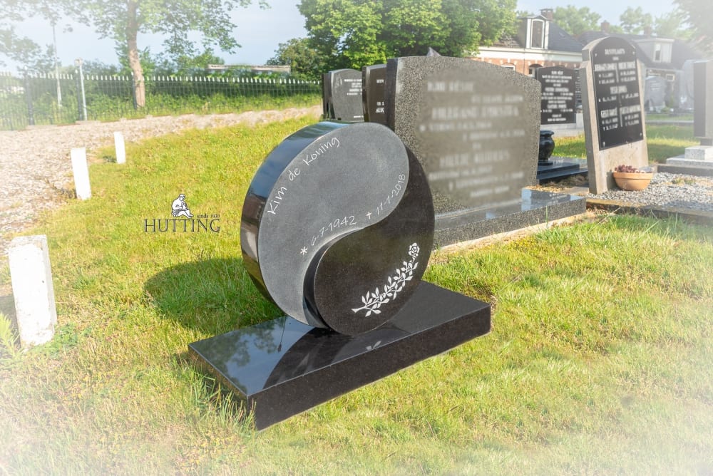 Dit grafmonument is uitgevoerd in het prachtige symbool Yin-Yang. Yin-Yang symboliseren man en vrouw, tegenstellingen en waarden die niet zonder elkaar kunnen. Alles wat het leven omvat. Afgebeeld grafmonument is uitgevoerd in gepolijste Zwart Graniet waarbij het grijze deel gematteerd is. De kleurcontrasten en het model van het monument zijn erg verfijnd.