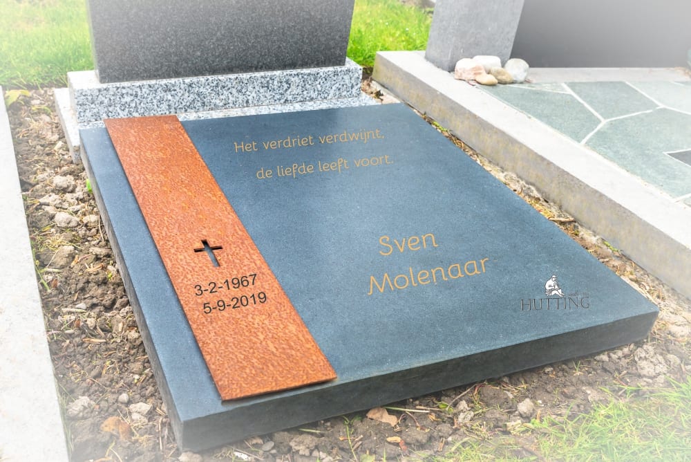 Waar voor de een de voorkeur geeft aan een traditioneel grafmonument, gaat een ander voor een eigentijdse steen. Bij Hutting Natuursteen bieden we een ruime keuze in materialen en vormgeving. Naast traditioneel steen, kunnen grafstenen ook vervaardigd worden van marmer, graniet, cortenstaal, hout of glas. Het is zelfs mogelijk materialen met elkaar te combineren. De laatste jaren trekken de natuurlijke grafmonumenten weer aan. Denk daarbij aan ruwe grafstenen, zwerfkeien en versteend hout – materialen die gevormd zijn door de natuur. Elk exemplaar is uniek, net zoals ieder mens ook is. Ook voor een bijzondere belettering bent u bij ons aan het juiste adres. Van tekst in RVS tot een gezandstraalde belettering of misschien zelfs een lasergravure van een levensechte foto. Wij gaan graag met u aan tafel om uw wensen door te nemen.