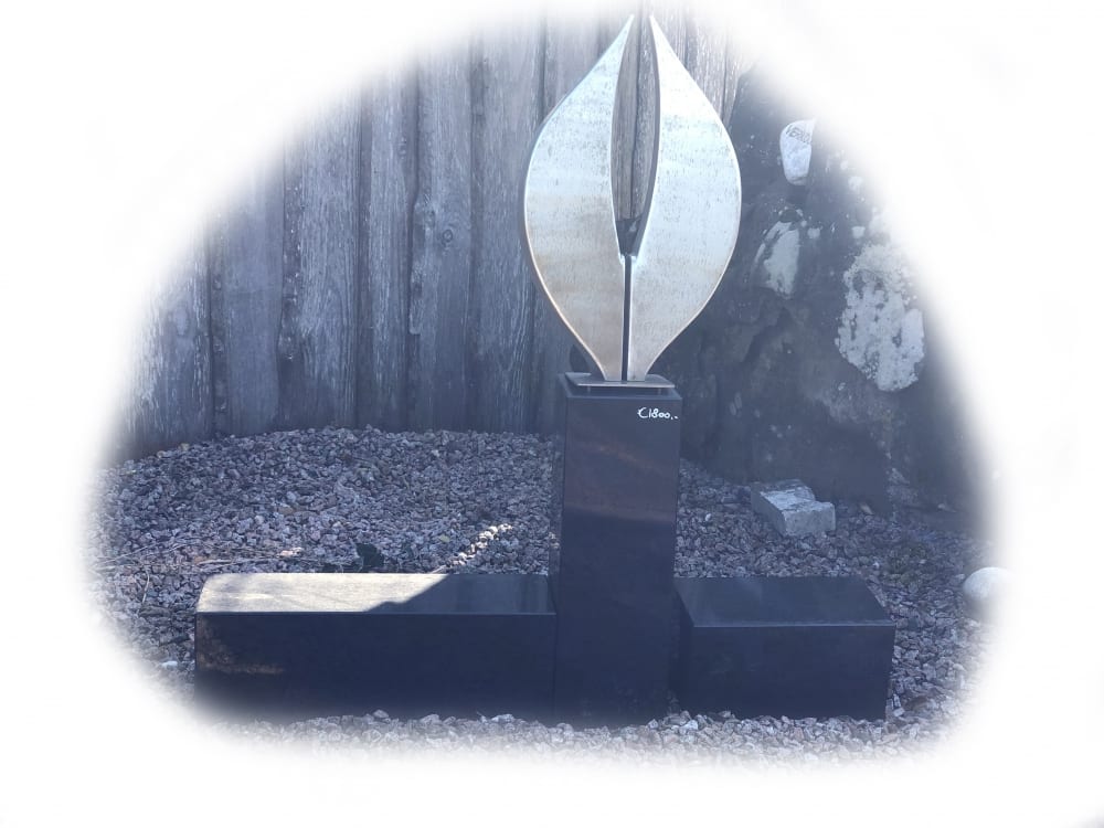 Een monument van zwart graniet met een RVS kunstwerk. In deze positie is het een dubbel monument. Indien anders opgesteld, kan het monument ook als urnenmonument gebruikt worden.